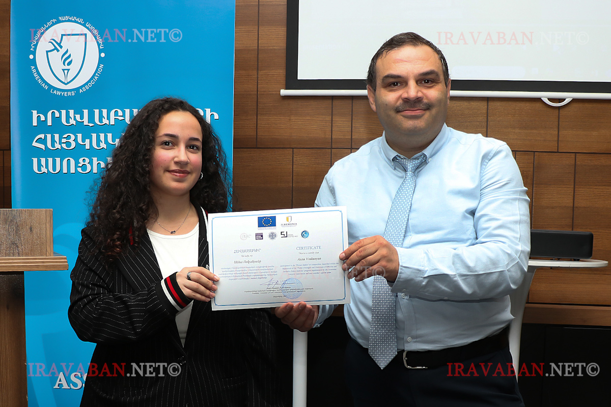 Այնուհետև, «Խոսի՛ր արդարության մասին» շարադրությունների և «Պատկերի՛ր արդարությունը» նկարչական մրցույթների համակարգող Անահիտ Մարդոյանը իր խոսքում ասել է, որ սկզբից մրցույթների հայտարարությունը երիտասարդների շրջանում արդարադատության, ոստիկանության և մարդու իրավունքների վերաբերյալ ընկալումների ստուգման համար է կարևորվել։