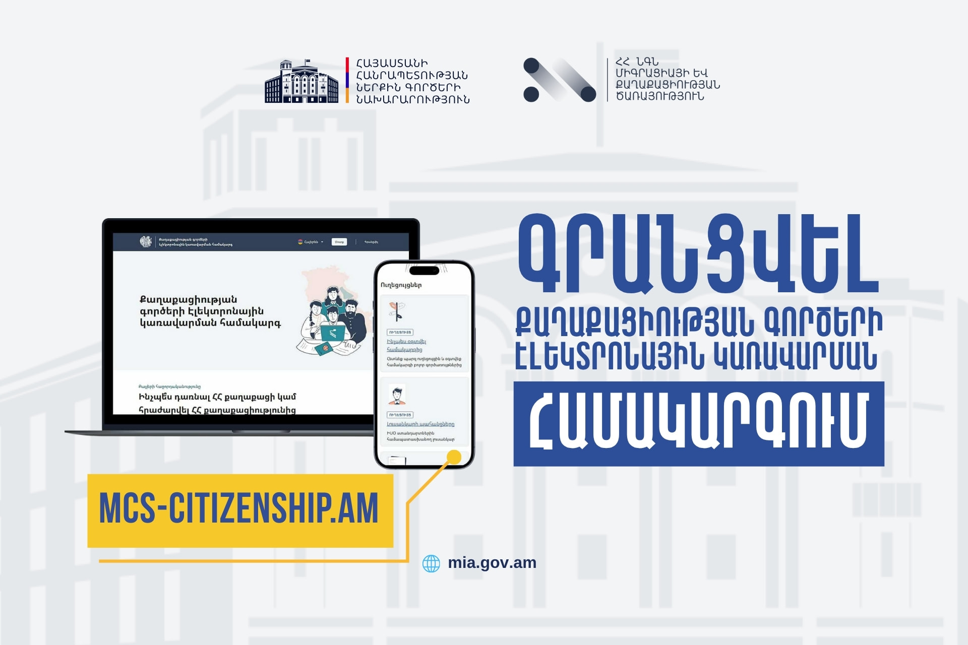 Հայաստանի Հանրապետության քաղաքացիները https://mcs-citizenship.am համակարգում կարող են գրանցվել բացառապես խիստ նույնականացմամբ՝ «ԵսԵմ» ազգային նույնականացման հարթակի միջոցով։