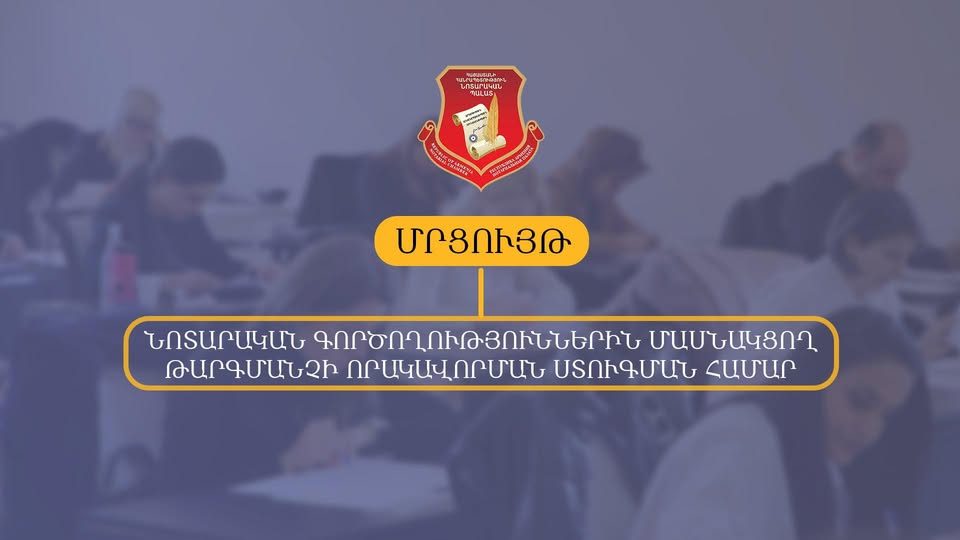 Արդարադատության նախարարությունը հայտարարում է նոտարական գործողություններին մասնակցող թարգմանչի որակավորման ստուգում անցկացնելու մրցույթ: