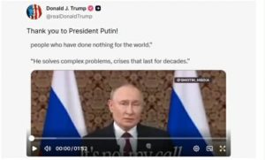 Հիշեցնենք՝ ՌԴ նախագահը իր ելությում խոսել է մի շարք հակամարտությունների լուծման ուղղությամբ Ամերիկյան առաջնորդի ջանքերի, Վենեսուելայի ընդդիմության առաջնորդ Մարիա Կորինա Մաչադոյին Նոբելյան մրցանակ շնորհելուց հետո այդ կոմիտեի հեղինակության կորստի մասին: Այս մասին Iravaban.net-ը տեղեկանում է ռուսական ԶԼՄ-ներից։