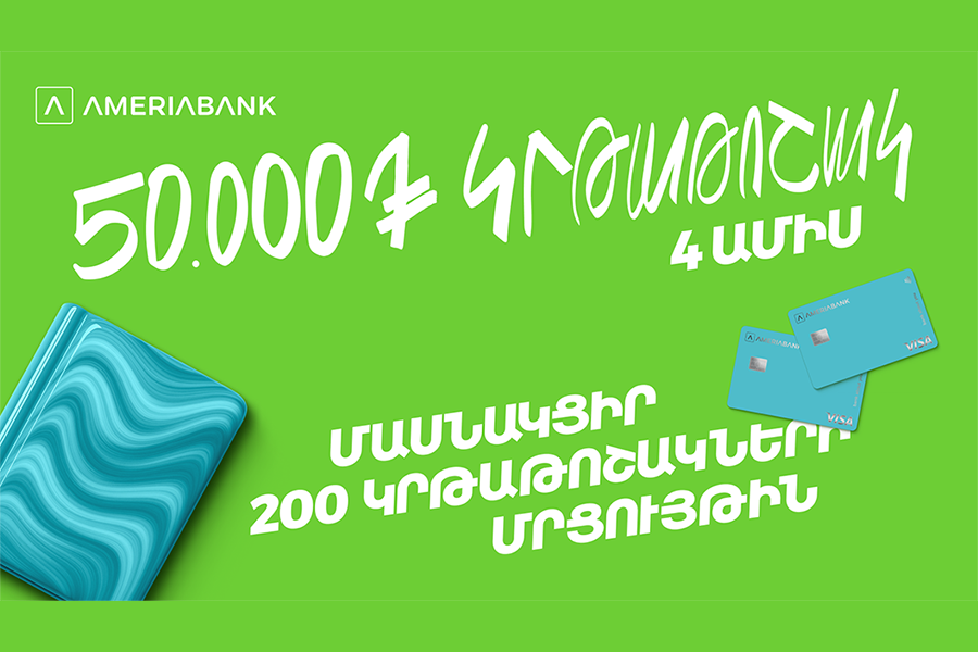 Ամերիաբանկը երկրորդ տարին անընդմեջ հայտարարում է «Իմ Հայաստան, իմ ապագա» կրթաթոշակների մրցույթ, որը նախատեսված է Հայաստանի պետական և մասնավոր բոլոր բուհերի ուսանողների համար: Մրցույթի նպատակն է բացահայտել և խրախուսել ակտիվ, ճկուն և պայծառ մտածելակերպ ունեցող ուսանողներին, որոնցից լավագույն 200-ը 4 ամիս շարունակ կստանա ամսական 50,000 ՀՀ դրամ կրթաթոշակ 2025-2026 ուսումնական տարվա երկրորդ կիսամյակի ընթացքում: