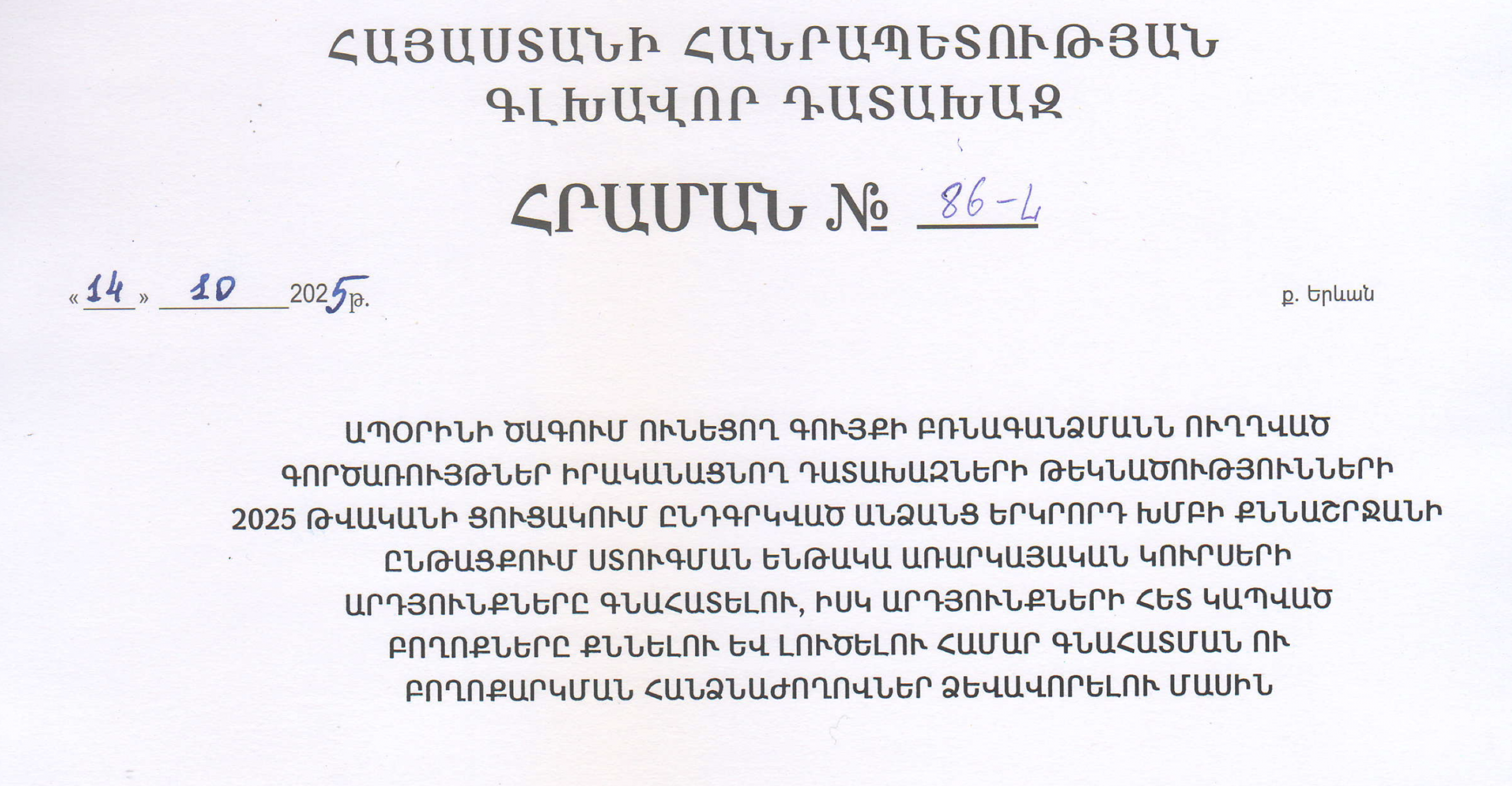 Iravaban.netը ուսումնասիրել է ՀՀ գլխավոր դատախազի թիվ 86-Լ հրամանը, որով Գլխավոր դատախազ Աննա Վարդապետյանը ձևավորել է հանձնաժողովներ՝ ապօրինի ծագում ունեցող գույքի բռնագանձմանն ուղղված գործառույթներ իրականացնող դատախազների թեկնածությունների 2025 թվականի ցուցակում ընդգրկված անձանց երկրորդ խմբի քննաշրջանի արդյունքների գնահատման և բողոքարկման համար: