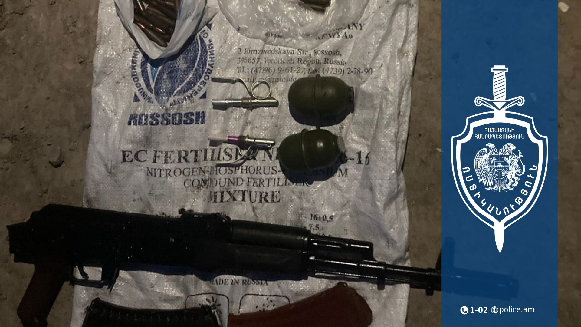 Մեկնած ոստիկանները նշված վայրում հայտնաբերել են ինքնաձիգ, տարբեր տրամաչափի 84 փամփուշտ և փամփշտատուփեր: